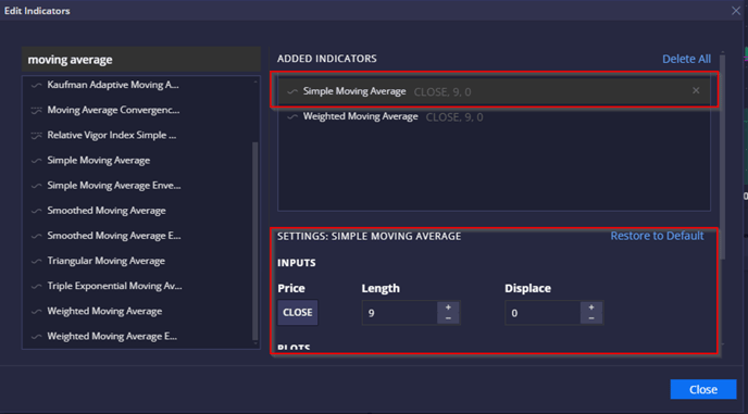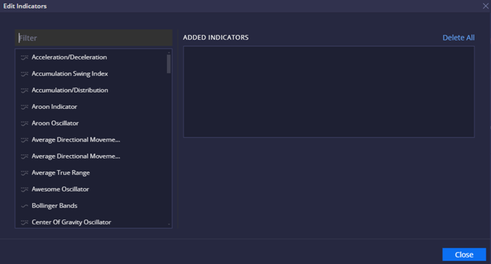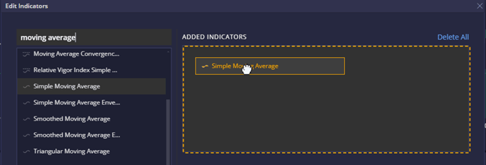 To add an indicator, one can simply drag and drop it to the “Added Indicators” area: