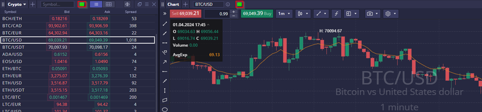 Link the watchlist widget with other widgets, such as the chart widget, for synchronized visualization of instruments.