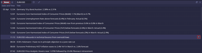 Traders can browse news titles and expand them to view full articles, allowing for comprehensive insights into market developments and events that may impact trading decisions.
