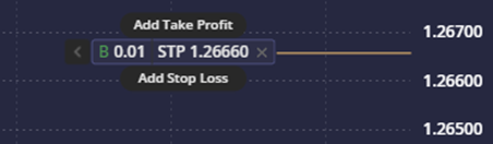 b.) “Add Take Profit/Stop Loss” buttons will appear, enabling the placement of the respective protection levels via drag and drop on the chart.