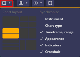 Users can synchronize chart elements like instruments, type, timeframe, appearance, indicators, and crosshair. For example, syncing instruments display the same across all charts, while syncing timeframes and indicators ensures consistent analysis across multiple charts. - Chart Settings