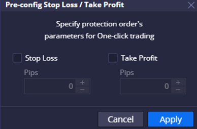 In case "One-click trading “ is not enabled, clicking the Sell / Buy buttons will bring the user to a new order creation window.
