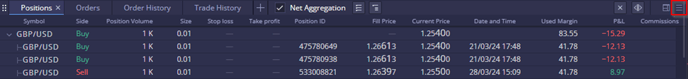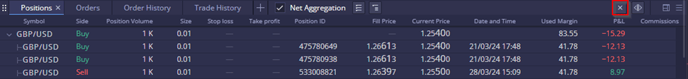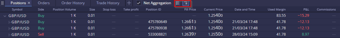 Positions with the same instrument can be viewed either individually or as aggregated totals