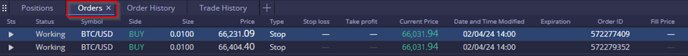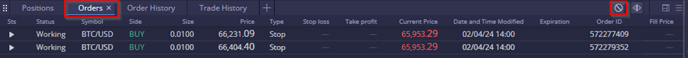 Users can also close all active pending orders at once using the "Cancel all orders" button (located in top right corner).