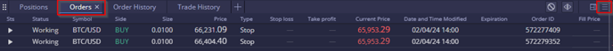 The Orders widget visualizes all active pending orders for the trading account.