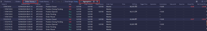 In the aggregated view, users can expand or collapse individual trades contributing to the overall position: