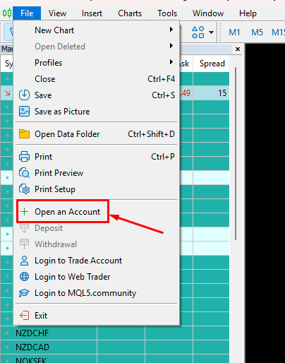 - Click "File" and choose "Open an Account"