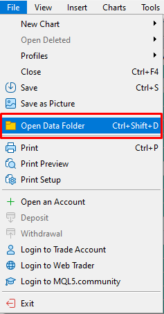- Click on File > Open Data Folder