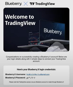 Note: You will receive a different Blueberry.X login by email, which looks like this. You will need this to link to TradingView.