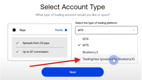 Once your Blueberry.X account is ready, proceed to TradingView.