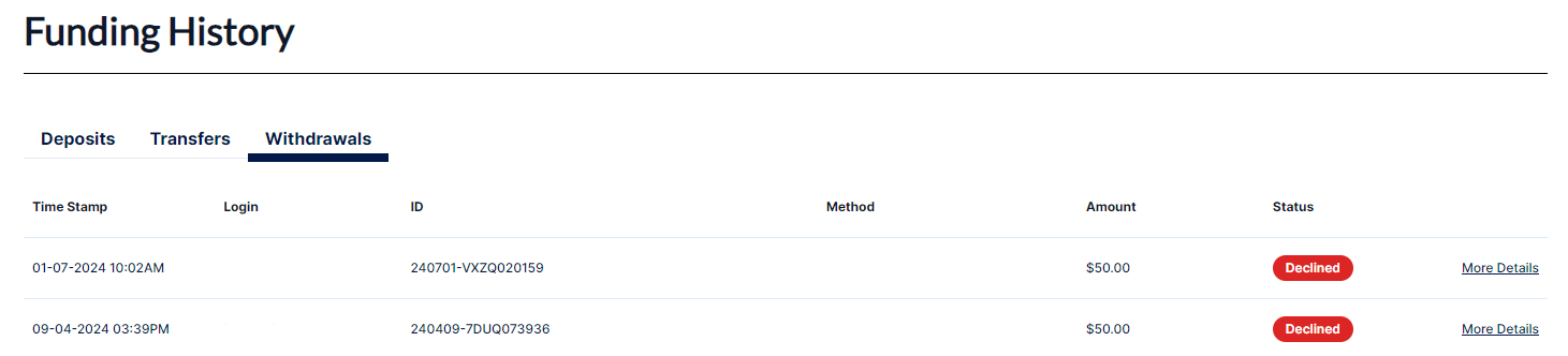 (AU) How can I view my fund transfer history? In your Client Portal, click on Funding History. Click on the Withdrawals tab to see your withdrawal transactions.