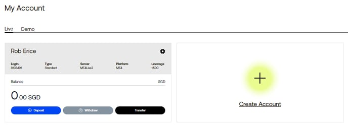 - In your Client Portal, click on '+ Create Account'