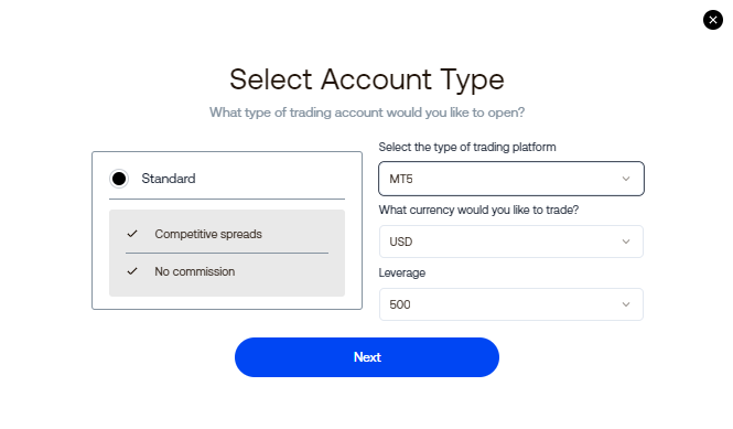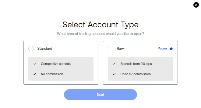 - Select your Account Type