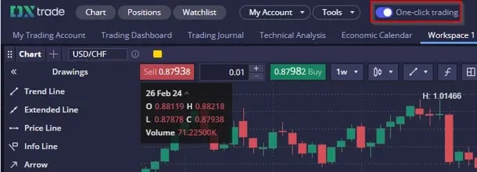 ใชสงคาสงซอขายไดโดยตรง เมอเปดใช "One-click trading"