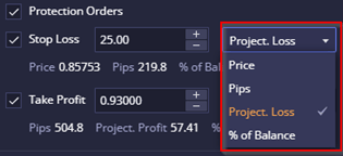 เพม SL/TP โดยกาหนดตามราคา, pips, จานวนเงน หรอเปอรเซนตของยอดเงนในบญช
