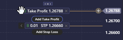 b.) จะมปม “Add Take Profit/Stop Loss” แสดงขนมา เพอใหสามารถลากและวางระดบราคาทตองการ บนกราฟได