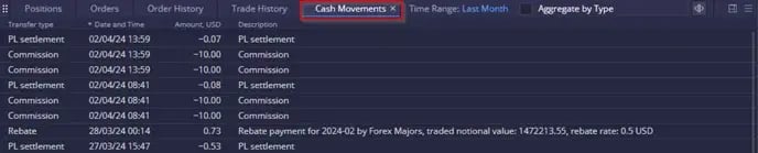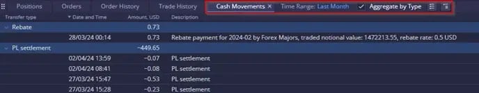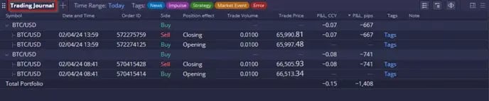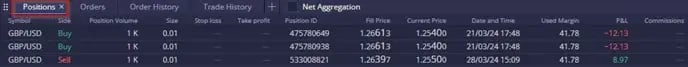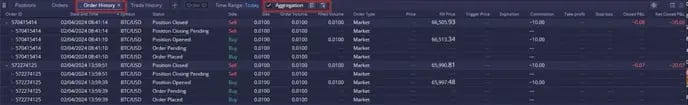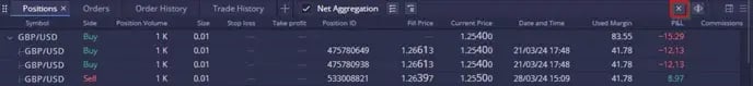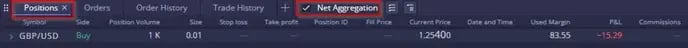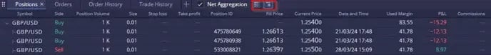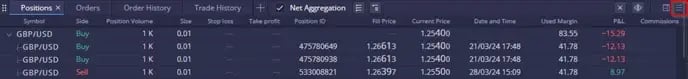 ในมุมมองรวม ผู้ใช้สามารถขยายหรือยุบการซื้อขายแต่ละรายการที่ส่งผลต่อตำแหน่งโดยรวมได้: