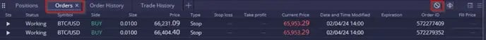 “Cancel all orders” ทมมขวาบนของหนาตาง Orders คะ