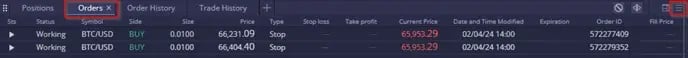 - Orders (คาสงซอขาย) Widget นจะแสดง คาสงซอขายแบบ Pending ทงหมด