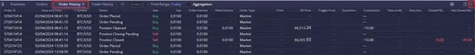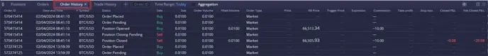 - Order History (ประวตคาสงซอขาย) หนาตางนจะแสดง คาสงซอขายทงหมดทถกดาเนน